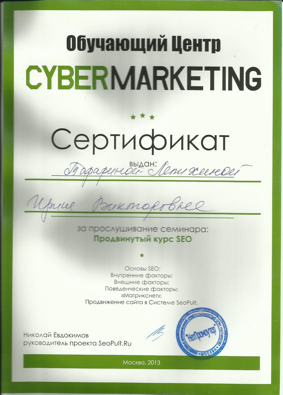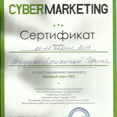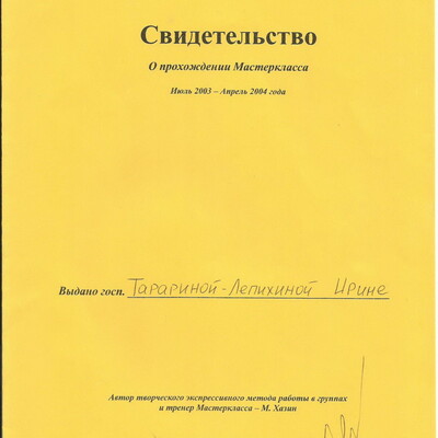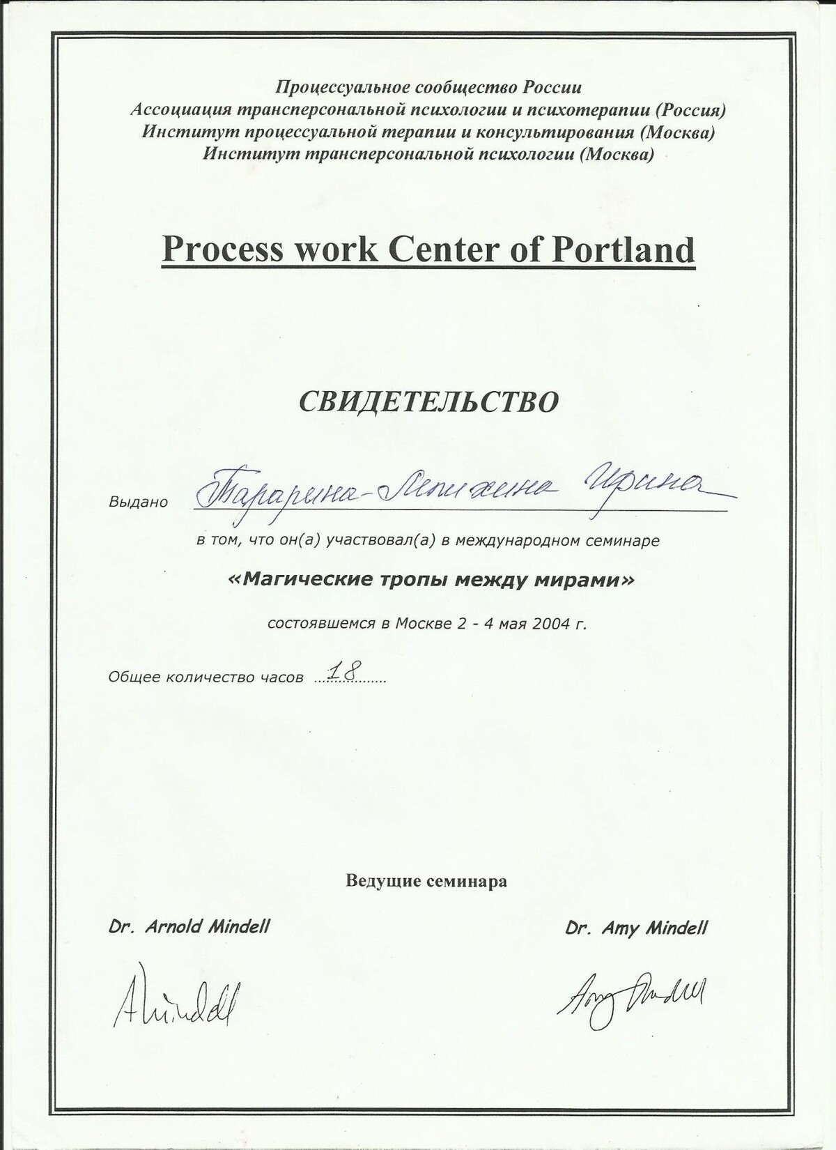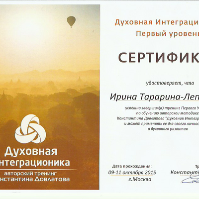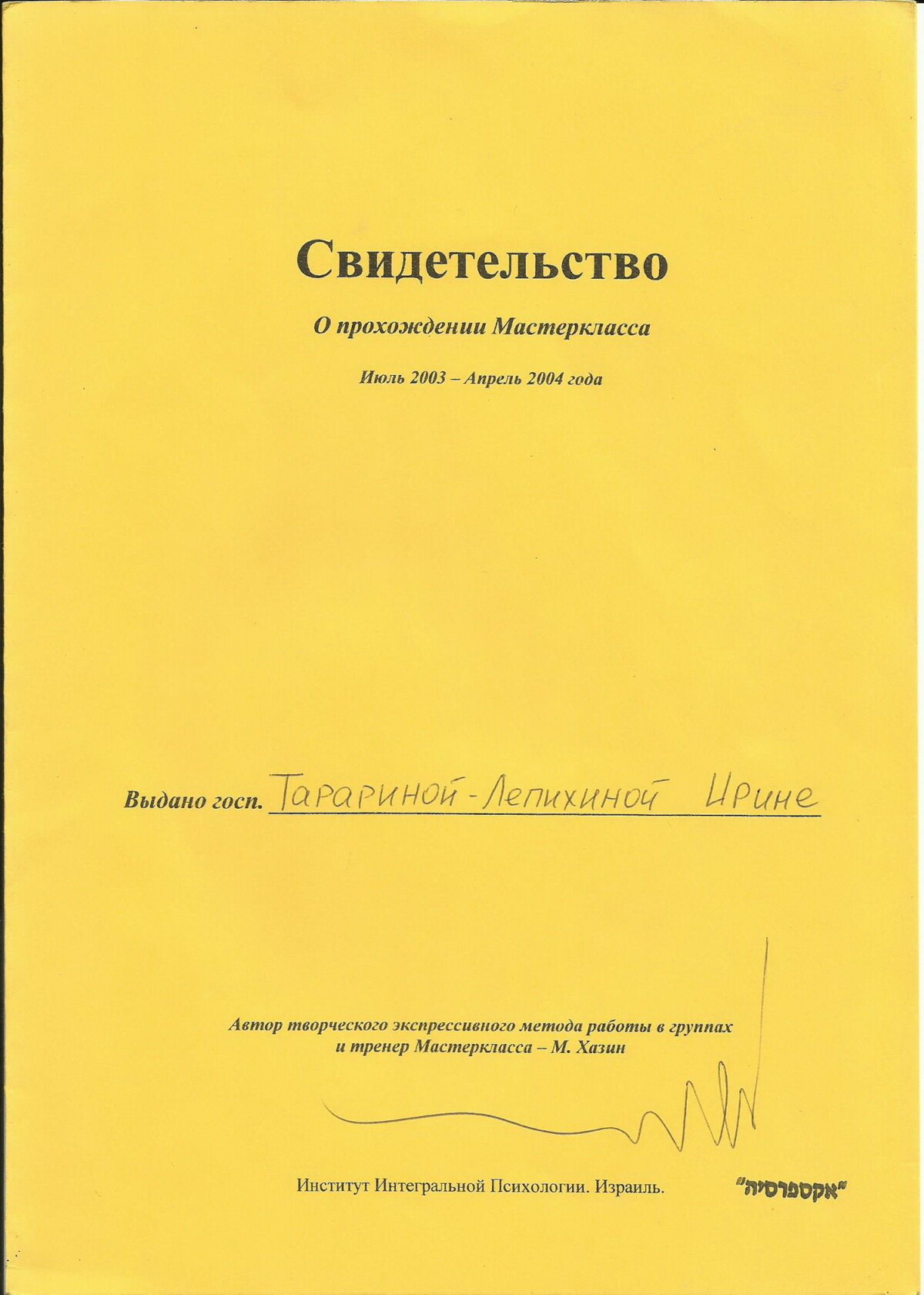 Институт интегральной психологии (Израиль) 2004 – 2005г. – основы групповой психологии.
