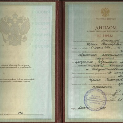 Институт современных психологических технологий 2002- 2003г. - практический психолог.