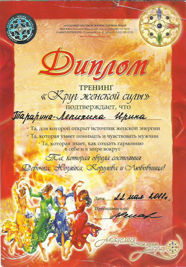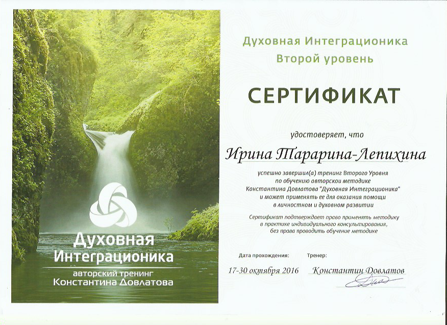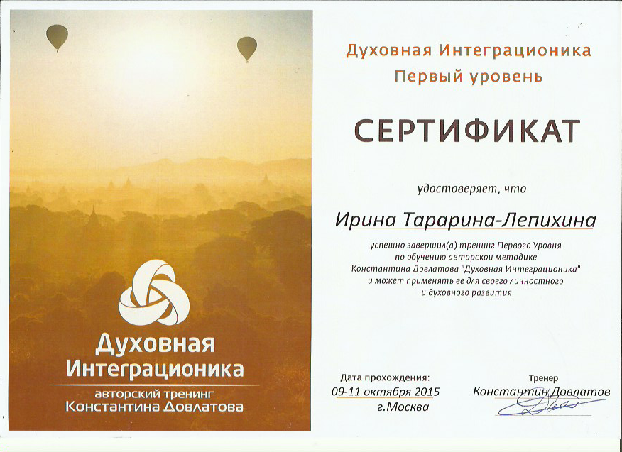 Высшее образование по двум направлениям (экономическое и психологическое); бесчисленное количество пройденных тренингов, семинаров и мастер-классов; работа психологом в реабелитационном центре с алко, нарко, пищевыми и другими зависимостями, 25-ти летний профессиональный и личный опыт в области здоровья, финансов, экономики, психологии и ведения бизнеса; регулярные практики йоги, медитаций, восточных единоборств сделали из меня специалиста широкого профиля.