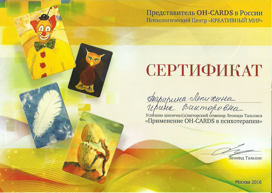 Российское представительство OH-CARDS 2016г. – применение метафорических карт в психотерапии.